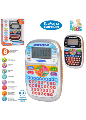 Информационные технологии не стоят на месте. Сейчас человека невозможно представить без такого необходимого гаджета, как планшет, который стал неотъемлемой частью нашей жизни.Для подготовки ребенка к освоению планшетного компьютера, созданы специальные детские модели, с ярким красочным оформление и простым интерфейсом. Детский планшетный компьютер, развивает способности и таланты ребенка, в мягкой игровой форме, без принуждения и капризов. Отличительной особенностью планшетного компьютера является его компактность, таким образом носить его в сумке или взять на прогулку не составит труда.Обучающий планшет имеет 120 функций, переключения режима: русский-английский, изучение букв, слов, цифры, математика, логика, игры и прочее.Особенности:•60 программ на русском + 60 программ на английском языке;•Черно-белый жк дисплей;•Регулировка контрастности и звука;•Компьютер обучающий, 120 заданий, русский, английский - это обучающий и развивающий игровой комплекс, предназначенный для детей от 2 до 7 лет;•Знания, умения и навыки, которые ребенок может получить с помощью таких компьютеров, можно разбить на несколько частей: изучение алфавита и цифр; обучение письму и счету, составление слов; изучение нот, игра и прослушивание мелодий; компьютерные игры;•Многофункциональный компьютер подготовит ребенка к школе.Характеристики:•Возраст: от 3 лет;•Для мальчиков и девочек;•Питание: 3 x 1.5 V батарейки АА (не входят в комплект);•Пластик;•Упаковка: картонная коробка.