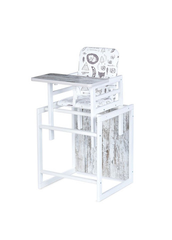 Характеристики: габаритный размер (ВхШхГ): 90х46х44 см.; высота до сиденья: 58 см.; высота до столешницы: 76 см.; столешница: 49х40 см.; габаритный размер стола (ВхШхГ): 43х55х48 см.; размер столешницы: 52х44 см.; габаритный размер стульчика (ВхШхГ): 53х35х37 см.; высота до сиденья: 24 см.; размер сиденья: 30х27 см.; вес: 10 кг; размеры упаковки: 55х45х10 см. Описание: Детский деревянный стульчик для кормления изготовлен из натуральной древесины – массива ольхи. Этот стульчик для кормления является моделью-трансформером. С 6-го месяца, его можно использовать в качестве стульчика для кормления, а в дальнейшем, когда малыш подрастет, может служить игровым столиком и обычным стульчиком. Данный стульчик является многофункциональным мебельным гарнитуром, Ваш малыш будет играть любимыми игрушками, рисовать первые рисунки, лепить первые скульптуры и многое другое. Стульчик для кормления OMMI отличается высоким качеством материалов, из которых он изготовлен. Все видимые детали скруглены, ЛДСП из которой изготовлены столешница и столик – отделана качественным Т-профилем, и крепко зафиксирована в пазах. Столешница – она большая по размеру и удобна в пользовании, может перемещаться в двух положениях. Изготовлена из экологичного ЛДСП толщиной 16 мм. Этот материал является основным при изготовлении мебели, не боится влаги и перепадов температуры, благодаря чему по этому изделию будет легко ухаживать. Стульчик выдержит не одно поколение детей. Также особого внимания заслуживает сиденье, изготовленное из прочной европейской плёнки, которую можно будет легко мыть в процессе эксплуатации и она не впитывает влагу. В конструкции стульчика есть дополнительные перекладины, которые будут служить дополнительным барьером по бокам. И еще в базовую комплектацию стульчика входит трехточечный ремень безопасности.