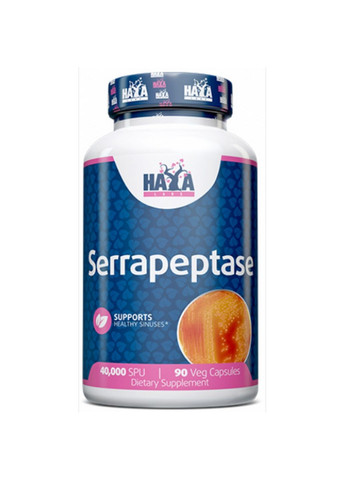 Haya Labs Serrapeptase 40000 SPU – это пищевая добавка, которая предлагает отличную альтернативу энтеросолюбильным ферментам. Она обеспечивает защиту фермента до достижения им кишечника для оптимального усвоения. Эта добавка содержит ферменты, которые помогают нормализовать функции дыхания, снять симптомы синусита, уменьшить воспаление и облегчить заложенность носа. Она также способна расщеплять белки.Особенности:Нормализует кровообращение, снимает отеки, помогает при боляхПомогает поддерживать здоровье носовых пазухОбладает свойством расщеплять белкиСеррапептаза, или серратиопептидаза, является ферментом, полученным из дружественной бактерии Serratia E-15, обитающей в японских шелкопрядах. Серрапептаза эффективна для поддержания организма при травмах, укрепления иммунной системы, улучшения состояния сосудов.Серрапептаза способствует секреции слизи и полезен людям с густой мокротой. Он снижает вязкость мокроты, сохраняя ее упругость. Комбинация вязкости и эластичности играет немаловажную роль в защите дыхательных органов от микробов и механических частиц. Путем уменьшения вязкости данный фермент снижает накопление слизи, что снижает риск бактериальных инфекций. Следует отметить, что серрапептаза также оказывает положительное влияние на слизь желудочно-кишечного тракта.Как принимать:Принимать 1 капсулу каждый день отдельно от еды.Содержание элементов в 1й порции1 капсула, Фермент серапептаза 40000 SPU, Ингредиенты, Целлюлозная капсула, мальтодекстрин, магния стеарат, кремнезем
