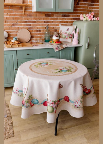 Скатерть украсит гостиную или кухню. Окрас будет отлично гармонировать со светлыми тонами мебели и текстиля в интерьере. Пасхальная тема.