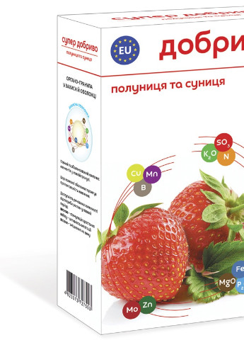 Для клубники и земляники — органическое удобрение для увеличения урожайности и сахаристости ягод, ускоряет созревание, увеличивает размеры плодов; увеличивает содержание нужных веществ. Обеспечивает растения полноценным питанием, компенсирует дефицит макро- и микроэлементов. Повышает сопротивляемость болезням, гнили и переохлаждению. Способ применения: • Корневая подкормка: 1 колпачок на 1 л воды (полив 3 - 4 раза в месяц). • Внекорневая подкормка: 1,5 колпачка на 2,5 л воды (опрыскивать 2 - 3 раза в месяц).