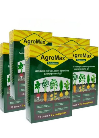 Agromax – это высокоэффективное экологическое средство, содержащее полный комплекс микро- и макроэлементов. Оно способствует снижению уровня нитратов и нитритов, а также имеет природное происхождение. Биоудобрение Agromax улучшает плодородие почвы, восстанавливает ее микрофлору, делает почву рыхлой и повышает ее влагоемкость. Оно обеспечивает растения питательными веществами, активизирует процессы фиксации азота, мобилизует фосфор и содержит микро- и макроэлементы в легкоусвояемой форме. Средство нормализует кислотность почвы и делает ее благоприятной для растений. Благодаря своему природному составу, оно помогает восстановить почву и поддерживает здоровый рост растений экологическим путем. Agromax – это инновационная разработка агрономов, позволяющая повысить урожай без применения химических удобрений. Оно отлично подходит как для полива, так и для опрыскивания. Его часто используют для подкормки клубники, чтобы ускорить начало плодоношения. Фермеры и садоводы отмечают, что без Agromax добиться хорошего урожая сложнее и затратнее. Исследования показывают, что применение этого удобрения дает впечатляющие результаты: – повышение урожайности на малоплодородных почвах на 50% – увеличение прорастания семян на 60% – удвоение урожайности на плодородных почвах Средство подходит для всех видов сельскохозяйственных и садовых культур, а его эффективность подтверждена многочисленными отзывами. Состав: – биогумус – оздоравливает почву, снижает негативное воздействие нитратов, борется с вредителями – фосфор – стимулирует рост растений, повышает урожайность – кальций – ускоряет прорастание семян, улучшает плодородие почвы, укрепляет ткани растений – магний – участвует в образовании хлорофилла, ускоряет рост садовых и декоративных культур, улучшает вкус плодов – азотобактерии – способствуют естественному обогащению почвы азотом, укрепляют иммунитет растений Способ применения: Разведите 1 саше в 1 литре теплой воды, затем смешайте с 10–20 литрами воды. Дайте раствору настояться 15–20 минут. Полейте почву с помощью лейки или ковшика в местах посадки семян. После появления всходов используйте опрыскиватель для обработки листьев и цветков. Характеристики: – количество в упаковке: 12 саше – срок годности: 3 года с даты изготовления – вес 1 саше: 21 г