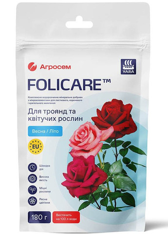 Листовая подкормка (во время активного роста цветов) 20-25 г удобрения в 10 л воды (2 г удобрения на 1 л воды). Опрыскивать растения 1-2 раза в месяц. Не опрыскивать цветы. Корневая подкормка (во время активного роста цветов) растворить 25–30 г удобрения в 10 л воды (2–2.5 г удобрения на 1 л воды). Поливать растения под корень 2-3 раза в месяц. •Подкормка легко усваивается растениями во время внесения •Комплексное удобрение способствует лучшей приживаемости растений после пересадки •Сбалансированное удобрение способствует образованию новых бутонов и соцветий •После внесения подкормки Яра, растения приобретают естественную устойчивость к болезням и вредителям •Удобрение не содержит хлора, натрия и тяжелых металлов •После применения удобрения цветы получают достаточное питание для здорового роста и обильного пышного цветения