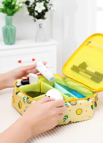 Дорожная косметичка-органайзер - это надежный спутник для вашей косметики и аксессуаров во время путешествий. Изготовленная из водоотталкивающей ткани, эта косметичка не только обеспечивает эффективную защиту ваших косметических средств от влаги, но также гарантирует организованный и безопасный транспорт вашего арсенала красоты. Основные характеристики и преимущества товара: Водоотталкивающая ткань: Обеспечивает надежную защиту ваших косметических средств от влаги во время путешествий или в условиях повышенной влажности. Функциональные отделения: Внутренние карманы и отделения обеспечивают легкое и удобное размещение косметики, предотвращают её перемешивание и обеспечивают быстрый доступ. Удобный дизайн: Компактный и легкий дизайн делает эту косметичку идеальной для переноски в сумке, рюкзаке или чемодане. Легкость в уходе: Водоотталкивающая ткань облегчает очистку косметички от грязи и загрязнений. Безопасное закрывание: Закрывается на молнию, что добавляет дополнительный уровень безопасности и предотвращает случайное рассыпание содержимого. Универсальное использование: Подходит для хранения не только косметики, но и различных мелочей, таких как украшения или личные вещи. Эта дорожная косметичка-органайзер - это практичный и стильный аксессуар для тех, кто ценит порядок и надежную защиту своих косметических сокровищ во время путешествий. Неудивительно, что этот органайзер станет вашим незаменимым спутником в мире путешествий и красоты.