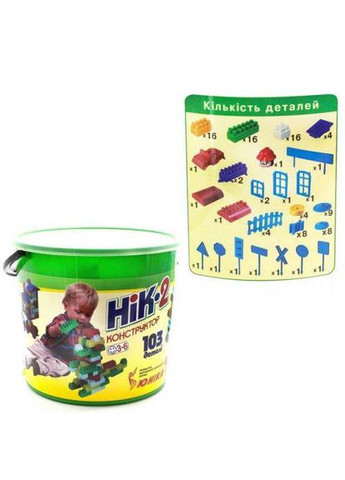Яркий пластиковый конструктор на 103 детали. Кроме обычных блоков набор состоит из деталей для постройки машинки, домика и нескольких дорожных знаков. В качестве упаковки - пластиковое ведёрко с ручкой. Бренд: Unika Упаковка: Ведро Цвет: Разноцвет Вес в упаковке: 900 г Габариты в упаковке: 20 x 21.5 x 21.5 см Cтрана производитель: Украина Материал: Пластик Комплектация: 103 дет, ведро