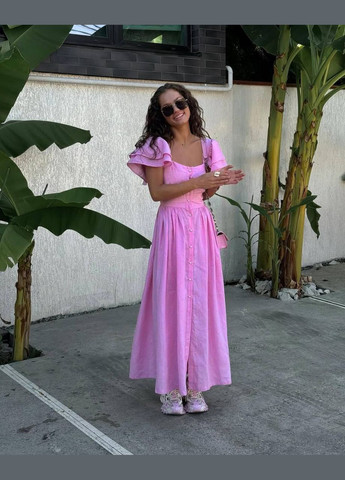 Женское льняное платье с открытым декольте и шнуровкой — элегантность в каждой детали.
