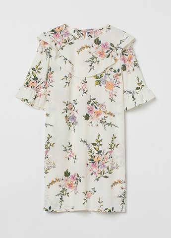 Легкое платье в цветочный принт из воздушной ткани - американский креп. Платье имеет широкий круглый вырез горловины. Цельнокроеные рукава с кокетливыми разрезами на плечах.