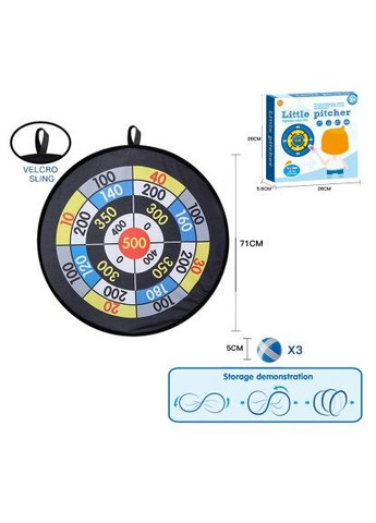 Дартс на липучках – это игра, которая включает в себя специально разработанную доску с липкой поверхностью, на которую мечи и дротики прилипают после попадания. Цель игры – набрать максимальное количество очков, попадая в различные секции мишены. Диаметр – 28 см.