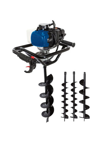 Scheppach EB2000 — мощный бензиновый мотобур для бурения отверстий в грунте под столбы, растения или фундамент. Оснащён одноцилиндровым двухтактным двигателем и эргономичными рукоятками для удобного управления. Быстрая замена буров и продуманная конструкция обеспечивают эффективность и комфорт во время работы. Технические характеристики • Тип двигателя: одноцилиндровый, двухтактный • Рабочий объём: 52 см³ • Мощность: 1,4 кВт (1,9 л.с.) • Холостой ход: 3000 об/мин • Максимальные обороты двигателя: 9600 об/мин • Номинальные обороты шнека: 370 об/мин • Объём топливного бака: 1,0 л • Соотношение топлива и масла: 1:40 • Уровень шума: o Звуковое давление: 87 дБ(А) o Звуковая мощность: 112 дБ(А) • Уровень вибрации на рукоятках: o Справа: 19,8 м/с² o Слева: 19,9 м/с² • Размеры без шнека (Ш × Г × В): 540 × 310 × 370 мм • Размеры с шнеком: 540 × 310 × 1120 мм • Вес: o Без шнека: 9,5 кг o С шнеком: 20 кг • В комплекте три шнека диаметром 100 мм, 150 мм и 200 мм длиной до 800 мм • Максимальная глубина бурения: 800 мм • Гарантия: 12 месяцев