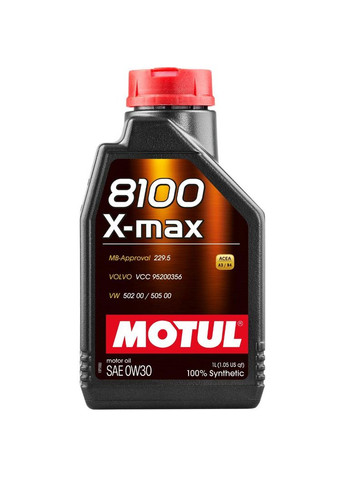 MOTUL 8100 X-max 0W-30 - высокотехнологичное 100% синтетическое моторное масло Full SAPS (Сульфатная зола, Фосфор, Сульфур), специально разработанная для мощных двигателей большого объема, бензиновых двигателей или дизелей, с косвенным или непосредственным впрыском. Универсальный продукт с многочисленными одобрениями производителей техники, включая гарантийную. Специально разработана для мощных бензиновых и дизельных двигателей, с турбонаддувом или атмосферных, с косвенным или непосредственным впрыском. Одобрение: VOLVO, MERCEDES, BMW, VW, RENAULT Соответствие экологическим нормам: Совместимо с экологическими стандартами. Совместимость: Подходит для всех видов топлива: бензин, дизельное топливо, этанол, LPG, CNG и биотопливо. Совместима с каталитическими нейтрализаторами. Преимущества: Энергоэффективность: Одобрена для использования в двигателях разных типов топлива, обеспечивая снижение расхода топлива. Высокая защита: Предохраняет двигатель от износа, коррозии и отложений даже в жестких условиях эксплуатации. Универсальность: Подходит для всех видов топлива, включая бензин, дизельное топливо, этанол, LPG, CNG и биотопливо. Подходит для каталитических нейтрализаторов. Внимание: Перед использованием обязательно обратитесь с инструкцией по эксплуатации транспортного средства.