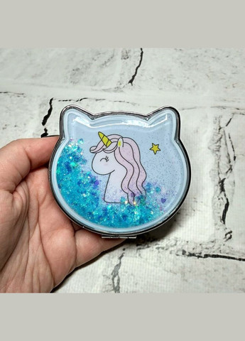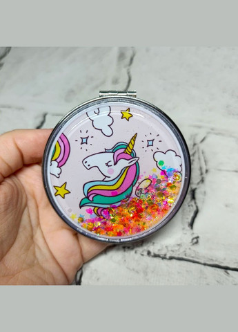 Карманное косметическое зеркало "Единорог" с переливающимися блестками. Зеркало поместится в любую косметичку и в самый маленький клатч! Зеркало 2в1 - обычное и с увеличением. Размер - 7х7 см Материал - сталь