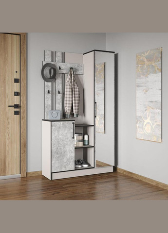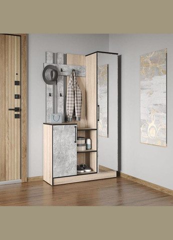 Размер: ● Высота 180 см ● Глубина 37.2 см ● Ширина 100.2 см Вес: 68 кг Цвета (+ Все возможные комбинации из двух цветов) : Антрацит, Аппалачи, Бетон, Белый, Венге темный, Сонома, Бетон темный, Бетон тефра, Дуб Гранж Песочный, Дуб Кверкус, Зеленый Дымчатый, Кашемир Производитель: Moreli/Украина Опис: Стильная прихожая Moreli KO-0004 — это практичное решение для организации пространства и хранения одежды и аксессуаров. Модель оснащена вместительными полками, зеркалом, крючками для верхней одежды и удобным закрытым шкафом. Петли с дотягивателем обеспечивают плавное и бесшумное закрывание дверцы. Регулируемые пластиковые ножки позволяют идеально выставить конструкцию даже на неровном полу. Качественная фурнитура и подробная инструкция в комплекте делают сборку быстрой и удобной. Корпус и фасады изготовлены из прочного ламинированного ДСП, крючки и ручки из надежного металла. Производитель – украинский бренд Moreli, гарантирующий современный дизайн и надежность каждой детали.