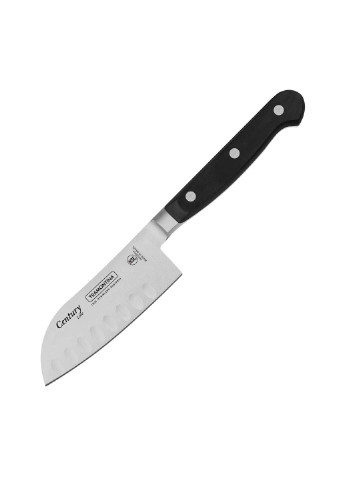 Нож CENTURY Материал лезвия: нержавеющая сталь Материал рукоятки: поликарбонат Режущая кромка ножа: гладкая Цвет: черный Назначение ножа: сантоку Ножи серии CENTURY относятся к профессиональным высококачественным ножам, благодаря особому подбору материалов и технологии изготовленияCENTURY является высококлассной высокопроизводительной линией кухонных ножей созданной специально для шеф-поваров и гурмановГлавной особенностью этих ножей является очень острая заточка, что позволяет нарезать продукты чрезвычайно тонкими ломтиками даже для самых сложных и виртуозных рецептовЭто достигается благодаря кованому клинку: ковка уплотняет кристаллическую решетку металла и делает режущую кромку ножа более долговечнойИдеально эргономичная ручка из поликарбоната и стекловолокна является продолжением клинка и обеспечивает комфорт и безопасность при резкеОсобенности: Материал лезвия: Кованная сталь европейского стандарта DIN 1.4110 Толщина лезвия: 2,5 мм Закалку до твердости 56 единиц по шкале Роквелла с криообработкой Матуриал рукоятки: поликарбонат Можно мыть в посудомоечной машине Бренд Tramontina основан в Бразилии в 1911 году10 фабрик, которые производят более 18 000 наименованийОдин из лидеров мирового рынка по производству ножей, столовых и кухонных принадлежностей, посуды для приготовления пищи, инструментов для сельского хозяйства, строительства и садаTramontina производит кухонную утварь только из наилучшей 18/10 нержавеющей стали, отполированной до зеркального блеска, которая со временем не тускнеет и не темнеетКаждый элемент разрабатывается с условием, чтобы он смог удовлетворить вкус, как обычного домовладельца, так и наиболее требовательного профессионального повараПриносит удовольствие от процесса приготовления пищи и от того, как это объединяет людей вовлеченных в этот процесс