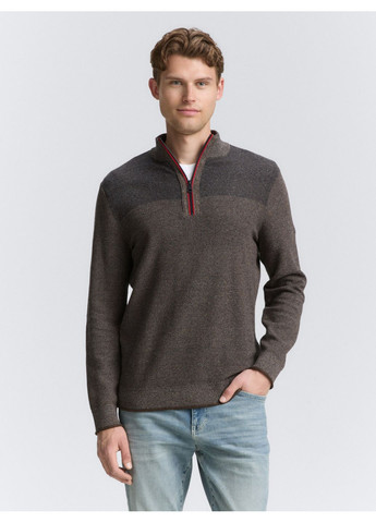 Мужской трикотажный джемпер-тройер с молнией. Коллекция Осень-2025. Структурированный джемпер в стиле Troyer из мягкого хлопкового трикотажа. Оснащён воротником-тройером и молнией до середины. Прямой крой (Regular Fit) обеспечивает удобную посадку. Нижний край и манжеты выполнены в рубчик. Меланжевый узор придаёт современный вид. Особенности: Цвет: navy teal grey multi color / темно-синий с серо-зелёным меланжем. Материал: 90% хлопок, 10% полиамид. Крой: Regular Fit, прямой. Воротник: Troyer. Застёжка: молния до середины. Рукава: длинные. Карманы: отсутствуют. Узор: меланж. Сезон: Осень/Зима 2025. Состав: 90% хлопок, 10% полиамид. Уход: деликатная стирка при 30°C. Стирать с похожими цветами. Стирать и гладить наизнанку. Вернуть форму во влажном состоянии. Сушить в горизонтальном положении. Не отбеливать. Не сушить в сушильной машине. Гладить при низкой температуре. Не подвергать химчистке. Не гладить украшения.