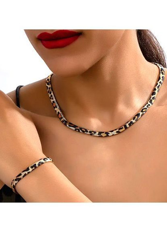 Бижутерия комплект Стильный набор украшений из чокера и браслета Идеально для стильного каждодневного люка Шириной 0.6 см плоские жгуты в леопардовом принте Колье ддлиною 34+ 7 см цепочка-удлинитель браслет длиною 17+ 5 см цепочка-удлинитель