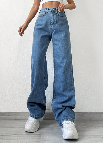 Голубые высокие джинсы прямого кроя.Полуобхват: Талия: 26(30), 27(31), 28(32), 29(33), 30(34), 31(35), Бедра: 26(44), 27(45) ), 28(46), 29(47), 30(48), 31(49), Длина изделия - 102, Длина внутреннего шва - 75, Ткань: Средней эластичности.