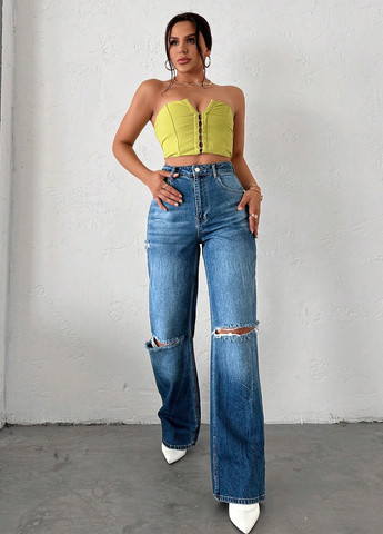 Цвет Синий / Фасон Прямые / Высота посадки Высокая талия / Декор Потертости, Рваный / Сезонность Демисезон