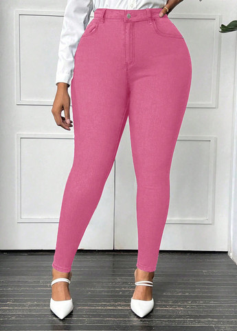 SHEIN Privé Curvy Skinny. Они имеют высокую талию и узкий, обтягивающий дизайн штанин. Детали включают карманы, застежку-молнию и ткань средней эластичности.