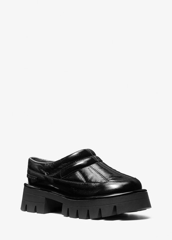 Женские клоги Michael Kors. Клоги Barton от Michael Kors вдохновленные зимними ботинками, сочетают в себе классический дизайн, изготовлены из натуральной кожи с потрескавшимся эффектом. Внутри мягкая текстильная подкладка. Закрытый круглый носок. Толская рифленая подошва обеспечивает практичность. Без застежек. Логотип бренда сбоку. Модная, удобная и устойчивая – это повседневная обувь, которая обеспечит вашим ногам максимальный комфорт.  Сочетайте их с носками и джинсами. Отличное качество. Высота каблука - 5 см.