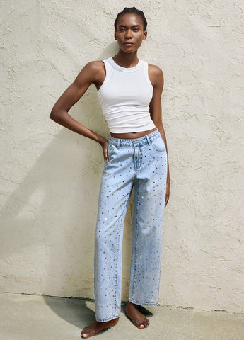Цвет Светло-синий / Фасон Прямые / Высота посадки Низкая талия / Декор Потертости, Пайетки / Сезонность Лето