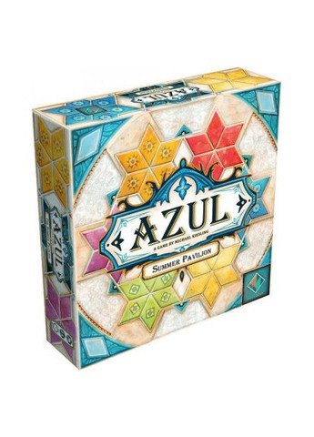На рубеже 16 века король Мануэль I поручил лучшим ремесленникам Португалии построить грандиозные здания. После завершения дворцов Эворы и Синтры король стремился построить летний павильон в честь известнейших членов королевской семьи. Создать это сооружение должны были самые талантливые ремесленники, чье мастерство соответствовало великолепию, которого заслуживает королевская семья. К сожалению, король Мануэль I скончался еще до начала строительства. В Азуле. Летний дворец игроки возвращаются в Португалию, чтобы выполнить никогда не начинавшуюся задачу. Как мастер-ремесленник, вы должны использовать лучшие материалы для создания летнего дворца, тщательно избегая расхода материалов. Лучшие примут вызов почтить память португальской королевской семьи. Игра Азул. Летний дворец длится шесть раундов, и в каждом раунде игроки выбирают плитки, а затем размещают их на своем индивидуальном планшете, чтобы набрать очки. В каждом раунде в игре есть цвет «джокера» (обозначается маркером раунда на центральном игровом поле). Этот джокер является цветом, который может использоваться для покрытия расходов, связанных с размещением плитки любого цвета на доске игрока. Содержимое коробки: 132 плитки (по 22 каждого из 6 цветов) 4 планшета игрока 1 поле игры 1 маркер первого игрока 4 маркера подсчета 9 полей для фабричных предложений 1 мешочек 1 башня для сброса 1 счетчик раундов 4 счетчика очков правила