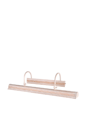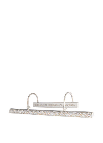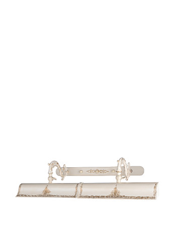 модель выполнена она в классическом стиле, изготовлена из высококачественного металлического сплава. Сплав устойчив к коррозии, так что вы можете не переживать о том, что со временем подсветка потеряет свою былую привлекательность. Подсветка прочная, проста в эксплуатации. Ее корпус – цвета слоновой кости с золотистыми вкраплениями, благодаря этому подсветка отлично впишется в интерьер в светлых тонах. Ее конструкция состоит из основания, рассеивателя света продолговатой формы и двух фигурных держателей, соединяющих эти два элемента. Рассеиватель декорирован узором золотистого цвета, содержащим разного рода завитки. Для работы подсветки необходимо использовать четыре лампочки с цоколем Е14 мощностью 25 Вт. Рекомендуем использовать лампочки небольшого размера, к примеру, типа Т25. Данная подсветка непременно привлечет внимание к картине, усилит ваше эмоциональное восприятие. Длина*ширина*высота, мм: 620*150*250