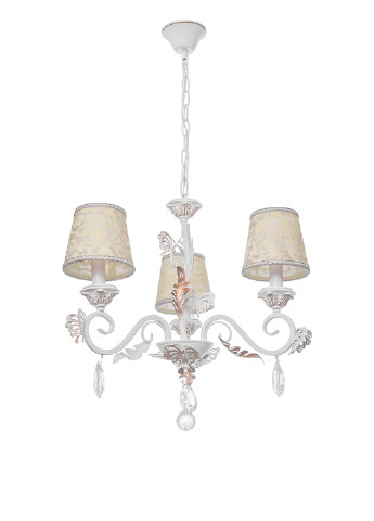 размышляете, какой будет ваша гостиная или спальня: уютной, комфортной либо атмосферной с люстрой от ТМ Brille BKL-664S/3 E14 WH+G? Даем подсказку, она будет и уютной, и комфортной, и тем более, атмосферной. А все потому, что плафоны изготовлены из ткани, приглушают излучаемый лампами свет, придавая ему мягкости. Конструкция люстры представлена небольшим металлическим каркасом белого цвета с вкраплениями золотистого, к которому прикреплено три тканевых абажура бежевого цвета с едва заметным узором. Каркас дополнительно декорирован металлическими бабочками, листьями, а также подвесками со стеклянными, гранеными, прозрачными камушками. Для работы необходимо использовать три лампы с цоколем Е14 (накаливания, энергосберегающая, светодиодная). Высоту можно изменять с помощью металлической цепи путем удаления или добавления звеньев. Высота: 850 мм