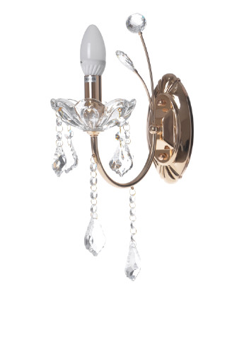 создать в доме атмосферу достатка и праздника, стабильности и роскоши поможет классическое бра BCL-657W/1 E14 FGD. Разноцветная игра света, яркие переливающиеся блики сразу поднимут настроение, создадут атмосферу уюта. Конструкция светильника состоит из металлического золотистого основания, к которому с помощью фигурного держателя прикреплен патрон для лампы, помещенный в стеклянную тарелочку. Внешне конструкция данного светильника напоминает старинный канделябр, вот только вместо восковой свечи источником света служит одна электрическая лампочка с цоколем Е14 мощностью 40 Вт. Дополнительно конструкция украшена подвесками со стеклянными прозрачными гранеными камушками. Данное бра можно разместить на стене, как самостоятельный источник света либо дополнить ансамбль с люстрой, зеркалом или картиной. Ширина: 120 мм, длина: 420 мм, высота: 250 мм