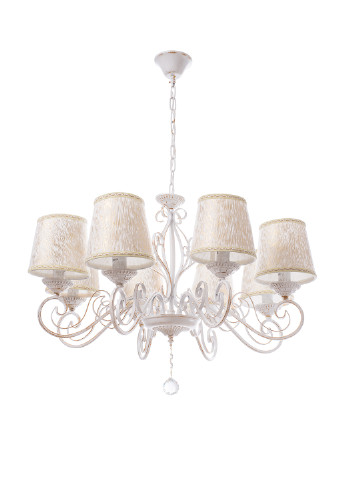 размышляя над тем, какой будет ваша спальня, гостиная или столовая: уютной, комфортной либо атмосферной, представьте в ней люстру с абажурами BKL-663S/8 E14 WH+G. Эта модель соберет все эти три качества в одно целое. Комната будет и уютной, и комфортной, и атмосферной, а все благодаря наличию абажуров. Абажуры приглушают излучаемый лампами свет, придавая ему необычайной мягкости. Осветительный прибор изготовлен из металла и ткани. Конструкция состоит из металлического каркаса белого цвета с вкраплениями золотистого, к которому прикреплено восемь плафонов. Плафоны тканевые, белого цвета. Дополнительно каркас украшен стеклянной подвеской с прозрачными гранеными камушками. Для работы необходимо использовать восемь ламп с цоколем Е14 (накаливания, энергосберегающая, светодиодная). Высоту можно изменять путем удаления или добавления звеньев цепи. Высота х диаметр (мм): 800х700