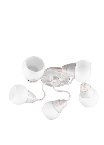 потолочная люстра LK-554S/5 E14 монтируется непосредственно к потолку с помощью, закрепленной на основании, планки. Ее компактная конструкция не займет жилой объем помещения, не утяжелит его внешний вид, хорошо подойдет для небольшой гостиной или спальни с невысоким потолком. Люстра изготовлена из металла и стекла. Конструкция представлена небольшим металлическим каркасом белого цвета с вкраплениями золотистого, к которому прикреплено пять плафонов. Плафоны стеклянные, белые, матовые. Приглушают, излучаемый лампами свет, придавая ему мягкости. Для работы необходимо использовать пять ламп с цоколем Е14 мощностью 4 Вт. Рассчитана люстра для работы от сети 22 В. Включать и выключать ее нужно с помощью настенного клавишного выключателя. Высота х диаметр (мм): 500х200