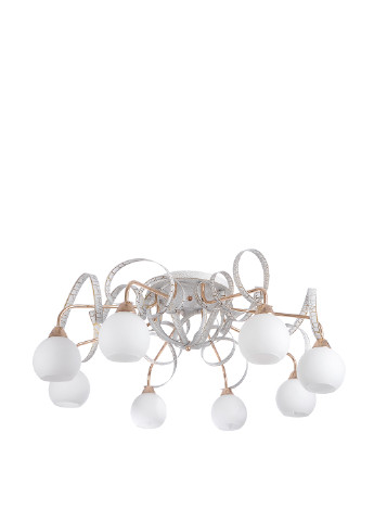 потолочная люстра LK-517S/8 E14 изготовлена из стекла и металла. Благодаря сочетанию этих двух материалов люстра достаточно крепкая и долговечная. Она имеет металлический каркас золотистого цвета, который украшен дополнительными декоративными элементами и четырнадцать стеклянных плафонов с матовыми покрытием белого цвета в форме шара. Благодаря таким плафонам свет будет мягким, приятным для восприятия. Для работы люстры необходимо четырнадцать лампочек с цоколем Е14 мощностью 40Вт. Повесить такую люстру вы сможете как в гостиной, так и в спальне. Люстра выполнена в белом цвете, что позволяет поместить ее в интерьер в светлых тонах. Диаметр*высота, мм: 700*330