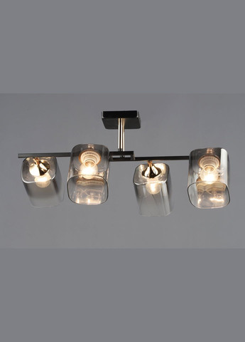 Потолочная Люстра VALESO B N6647/4 Черный + Золото: Современный Контраст и Стильное Освещение Представляем потолочную люстру VALESO B N6647/4 — смелое и изящное решение, сочетающее в себе современный дизайн и элегантные акценты. Эта модель отличается стильным контрастом глубокого чёрного цвета основания и каркаса с роскошными золотыми деталями крепления плафонов, создавая динамичный и привлекательный вид. Люстра оснащена четырьмя оригинальными стеклянными плафонами, имеющими интересную форму и придающими освещению особый шарм. С размерами длина L570 мм, ширина W460 мм и высота H250 мм, она прекрасно подходит для освещения гостиных, столовых, спален или офисных помещений в современном стиле. Она имеет четыре стандартных цоколя E27, что позволяет использовать лампы мощностью до 60W каждая (общая мощность до 240W). Обратите внимание, что лампочки не входят в комплект, что даёт вам свободу в выборе желаемой яркости и цветовой температуры света. Изготовленная из высококачественных материалов — прочной стали и элегантного стекла — люстра VALESO B N6647/4 гарантирует долговечность, надёжность и лёгкость в уходе. Её непревзойдённое сочетание цветов и форм станет центральным элементом вашего интерьера, придав ему изысканности и современного стиля. Характеристики: Бренд: VALESO Цвет: Чёрный + Золото Размер изделия: L570W460H250 мм Цоколь: E27 Мощность: 4X60W (максимально 240W) Материал: Сталь + Стекло Лампочка в комплекте: Нет