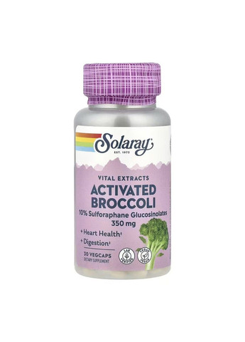 Основные преимущества: Broccoli, Solaray, 350 мг, 30 вегетарианских капсул Брокколи от Solaray — это мощная добавка на основе экстракта семян брокколи, которая способствует улучшению общего состояния организма Состав Размер порции: 1 вегетарианская капсула Количество порций: 30 Количество на порцию % от суточной потребности Брокколи (Капуста огородная) (экстракты семян) (Гарантировано, что он содержит 35 мг [10%] сульфорафан-глюкозинолатов и снабжает ферментативную активность мирозиназы) 350 мг *** Мирозиназный фермент (Капуста брокколи) (тиоглюкозидаза) 13 мг *** Органические замороженные побеги Брокколи (Капуста огородная) 50 мг *** *** Суточная потребность не определена.