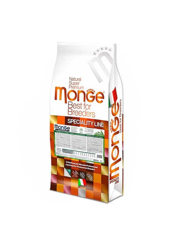 Сухой корм с ягненком, рисом и картофелем для взрослых собак всех пород Монж Natural Superpremium All Breeds Adult Monge All Breeds Adult это полноценный сбалансированный рацион для взрослых собак всех пород. Источник белка – свежая баранина, которая легко усваивается организмом и имеет отличные вкусовые качества. Формула обогащена пробиотиками, поддерживающими здоровье кишечника, иммуностимуляторами (эхинацея, орегано, чеснок) и омега-3 жирными кислотами из лососевого масла для красивой шерсти. Не содержит консервантов и искусственных красителей. Особенности: Ягненок и рис являются источником легкоусвояемых белков и углеводов, поэтому этот рацион отлично подходит для собак с проблемами пищеварения. Содержимое X.O.S. (Пробиотиков) помогает сохранить естественный баланс кишечной микрофлоры, способствует оптимальному усвоению питательных веществ и повышает иммунитет. Омега-3 и омега-6 жирные кислоты оптимально сбалансированы в составе корма для поддержания кожи и шерсти в отличном состоянии. Глюкозамин, хондроитин, кальций и фосфор для здоровья суставов. Эти вещества в составе корма способствуют нормальному функционированию суставов опорно-двигательного аппарата. Рекомендации по кормлению: корм можно подавать сухой или размоченной теплой водой. Суточная норма может изменяться в зависимости от личных потребностей животного. Суточная норма кормления: Вес взрослой собаки, кг 12 14 16 18 20 25 30 40 50 60 70 80 Образ жизни собаки Количество корма, г Собаки, проживающие в доме 186 211 231 250 271 32 685 757 Собаки, много времени проводящие на улице 205 230 256 276 301 353 405 501 591 678 761 841 Спортивные собаки и собаки, живущие в холодном климате 231 256 25 25 649 745 836 924 Обеспечьте своему питомцу постоянный доступ к свежей воде! Ингредиенты: баранина (обезвоженная 30%, свежее мясо 10%), рис (15%), кукуруза, животный жир (99,5% очищенное куриное масло), сушеный свекольный жом, картофельный белок (4%), пивные дрожжи белки (печень), рыба (сушеный лосось), рыбий жир (лососевое масло 1%), минеральные вещества, дрожжевые продукты (маннановые олигосахариды MOS 1%), ксилоолигосахарид (XOS 0,3%), юка шидигера (0, Arthrospira platensis 0,3%), продукты, полученные в результате переработки овощей (корень эхинацеи пурпурной 0,2%, душица обыкновенная 0,1%), сушеный чеснок (0,2%), глюкозамин, хондроитина сульфат. Гарантированный анализ: сырой протеин: 26%, сырая клетчатка: 2,5%, сырой жир: 15%, сырая зола: 6%. Кальций: 1,2%, Фосфор: 0,80%, Омега-3 жирные кислоты: 0,5%, Омега-6 жирные кислоты: 4,4%, Омега-6/Омега-3=8. Метаболизированная энергия 4130 ккал/кг. Пищевые добавки/кг: витамин A (ретинилацетат) 30 700 МЕ/кг, витамин D3 1 610 МЕ/кг, витамин Е (all-rac-alpha-tocopheryl acetate 3a700i) 72 мг/кг, селен (селенит натрия 0,4 мг/кг/кг) моногидрат 90 мг/кг) 29 мг/кг, цинк (оксид цинка 170 мг/кг): 136 мг/кг, медь (пентагидрат сульфата меди (II) 46 мг/кг) 11,7 мг/кг, железо (железо (II) сульфат моногд/гг) (безводный йодат кальция 2,4 мг/кг) 1,5 мг/кг; L-карнитин 135 мг/кг; Технически чистый DL-метионин: 1400 мг/кг. Технологические добавки/кг: антиоксиданты: экстракты токоферола из растительных масел. Органолептические добавки/кг: каштановый экстракт (Castanea sativa) 20 мг/кг, экстракт артишока (Cynara scolymus L.) 300 мг/кг. Энергетическая ценность: 4100 ккал/кг Фасовка: 2,5 кг, 15 кг