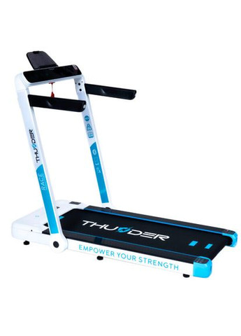 Ищете компактное, но? Беговая дорожка THUNDER IMPACT-BLUE — это идеальное решение, которое сочетает комфорт, функциональность и современные технологии, гарантируя эффективные тренировки каждый день! характеристики: Скорость: - Режим ходьбы (рама сложена - беговая площадка): 0,8 км/ч - 12 км/ч 0,8 км/ч - 12 км/ч Мощность двигателя: 1,5 л.с. Беговая поверхность: 40 см (Ш) x 106,5 см (Д) Амортиз: Вес устройства: 33 кг Максимальный вес пользователя: 130 кг Размеры разложенной беговой дорожки: 68 см (ширина) x 132 см (высота) x10 беговой дорожки в сложенном виде: 68 см (Ш) x 136 см (Д) x 14 см (В) Современные особенности: Bluetooth – для подключения к специализированным программам (FitShow, Zwift, Kinomap) ЖК-экран – отслеживайте свой прогресс Дистанционное управление – для полного контроля над вашей тренировкой Встроенные динамики – для прослушивания музыки Транспортные колеса - легко складываются и переносятся Специализированные программы для IMPACT-BLUE: Возможность персонализировать обучение Большое количество программ по выбору Создать мира! Что вы получите в наборе? Электрическая беговая Держатель для планшета/телефона Масло для обслуживания ремней Монтажный комплект (винты и ключи) Инструкции на польском языке