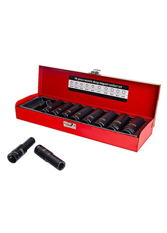 Набор высоких ударных головок Alloid 1/2", 10 предметов (10–24 мм) – это комплект торцевых головок, предназначенный для работы с ударными гайковертами и трещотками. Высокие головки обеспечивают удобный доступ к глубоким или труднодоступным креплениям, что делает набор незаменимым в автосервисах, на СТО, в мастерских и при выполнении ремонтных работ. Назначение: откручивание и закручивание гаек и болтов с глубоким расположением; использование с пневматическими, электрическими или ручными ударными гайковертами; идеальный выбор для профессионального автослесаря или мастера шиномонтажа. Основные характеристики: Количество предметов: 10 шт Присоединительный квадрат: 1/2" Материал: высокопрочная хром-молибденовая сталь (Cr-Mo) Поверхность: антикоррозионное фосфатное покрытие Тип: ударные удлиненные головки Размеры головок: 10, 12, 13, 14, 2 1 мм Упаковка: металлический кейс с фиксатором Преимущества: высокая прочность и устойчивость к ударным нагрузкам; Комплектация: 10 высоких ударных головок (10–24 мм); металлический кейс для хранения и транспортировки.