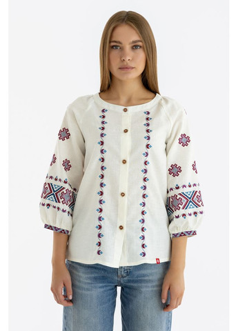 Женская вышиванка - это традиционная украинская рубашка, изготовленая из льняной ткани (80% лен, 20% полиэстер), которая имеет вышивку этничного мотива. Модель свободного прямого кроя, с длинными рукавами. Льняные вышиванки очень популярны среди украинских женщин и могут использоваться как национальный атрибут, а также как элемент современного стиля. Они могут иметь разные вариации фасонов и декора, что делает их универсальными для разных случаев - от повседневной носки до праздничных мероприятий.