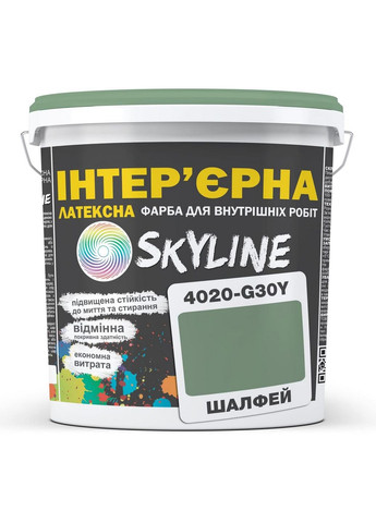 ЛАТЕКСНАЯ SKYLINE - краска, которая признана одним из самых оптимальных решений для покраски любых интерьеров, ТЕПЕРЬ В ГОТОВЫХ ТРЕНДОВЫХ ОТЦЕНКАХ. Выбирайте понравившийся цвет и получайте удовольствие, воплощая лучшие интерьерные идеи в жизнь. ПОКУПАЙТЕ БЕЗ ПРЕДВАРИТЕЛЬНОЙ ОПЛАТЫ ЗА КОЛЛЕРИРОВАНИЕ. Насыщенная, износостойкая матовая латексная интерьерная краска Skyline (Скайлайн). Выпускается в готовых цветовых тонах. Огромная палитра включает как нежные, пастельные оттенки, так и яркие, сочные и смелые цвета. Не имеет запаха. Экологически неопасный продукт. Этот материал оставляет лучшие впечатления от покраски. Обладает умеренной вязкостью, прекрасно перемешивается, без комков, при нанесении не разбрызгивается, ложится равномерным однородным слоем, прекрасно распределяясь по поверхности. Краска имеет повышенную стойкость к мойке и механическому истиранию (выдерживает до 5000 циклов влажной уборки). Используется в основном для внутренних работ. Применяется для декоративной, ремонтной, возобновляемой или первичной покраски поверхностей из бетона, кирпича, гипсокартона, дерева и других поверхностей. Подходит для покраски обоев. Используется как в сухих, так и влажных помещениях. Краска сертифицирована и может использоваться в детских, медицинских и других учреждениях, имеющих особые санитарные требования и ограничения. Расход в один слой: 100-150 мл/м2. Наносится кистью, валиком или краскопылителем в 1-2 слоя и более, в зависимости от типа поверхности и ее подготовки. Время высыхания от пыли – 30 минут. Нанесение следующего слоя – через 1-2 часа. Краска колеруется на профессиональном оборудовании в полном соответствии с эталонными оттенками палитры NCS. Цветопередача может незначительно отличаться в зависимости от типа дисплея. Основные Производитель: SkyLine; Страна изготовитель: Украина; Антисептическое свойство: Да; Аэрозольная краска: Нет; База под колеровку: BW; Без запаха: Да; Время высыхания: 1 час; Количество компонентов: Однокомпонентное; Максимальная рабочая температура окружающей среды: 35 град.; Максимальная температура хранения: 40 град.; Минимальная рабочая температура окружающей среды: 5 град.; Минимальная температура хранения: 0 град.; Моющая краска: Да; Основание краски: Латексная; Расход: 10 кв.м; Способ нанесения: Механизированный, Валиком, Кисточкой; Срок годности: 24 мес; Степень блеска: Матовая; Тип использования: Для внутренних работ; Тип окрашиваемого материала: Дерево, Штукатурка, Обои, Кирпич, Бетон; Фактурная краска: Нет; Пользовательские характеристикиФасовка: 10 л; Цвет: Шалфей;
