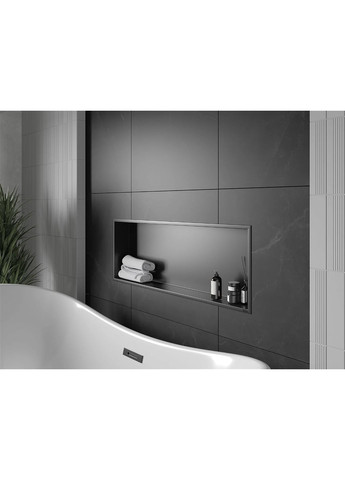 Дизайнерское решение: Скрытая система в нише представляет собой инновационное решение, которое можно легко установить в стену или специально подготовленную конструкцию, позволяющую оптимизировать использование пространства и гармонично вписать изделие в дизайн интерьера. Нержавеющая сталь 304 марки Благодаря использованию нержавейки марки SUS 304, настенные ниши имеют высокую стойкость к потемнению и коррозии, что гарантирует сохранение ее привлекательного внешнего вида и функциональности в течение длительного времени, независимо от уровня влажности в помещении. Черное покрытие (полимеризация) Новый способ нанесения на металл краски под высокими температурами (170 до 220°С) позволяет обеспечить долгое использование ниши без потери цвета. Легкость в уходе С гладкой поверхностью уход за изделием становится простым и эффективным, не требуя использования сильных моющих средств. Экономия на ремонте Настенные ниши обеспечивают максимально простой монтаж, позволяющий сэкономить на дорогих монтажных работах по укладке плитки. Гарантия 5 лет Бренд Nett предоставляет гарантию 5 лет, что обеспечивает дополнительный покой и уверенность в ее надежности.