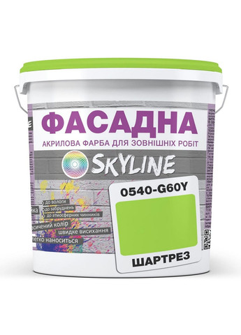 ФАСАДНАЯ SKYLINE - Акрилово-латексная краска высокого качества для наружных работ, проверенная временем и имеющая множество положительных отзывов, ТЕПЕРЬ В ГОТОВЫХ ТРЕНДОВЫХ ЦВЕТАХ. Выбирайте понравившийся цвет и приступайте к идеальному оформлению Вашего дома. ПОКУПАЙТЕ БЕЗ ПРЕДВАРИТЕЛЬНОЙ ОПЛАТЫ ЗА КОЛЛЕРИРОВАНИЕ Насыщенная атмосферостойкая матовая фасадная краска Skyline (Скайлайн). Выпускается в готовых цветовых тонах. Огромная палитра включает как нежные, пастельные оттенки, так и яркие, сочные и смелые цвета. Не имеет запаха. Экологически неопасный продукт. Для колорирования используют концентрированные пигменты высокого качества, сохраняющие первозданный цвет краски и не выгорающие на солнце более 10 лет. Этот материал оставляет лучшие впечатления от покраски. Обладает умеренной вязкостью, прекрасно перемешивается, без комков, при нанесении не разбрызгивается, ложится равномерным однородным слоем, прекрасно распределяясь по поверхности. Краска устойчива к атмосферным факторам (срок эксплуатации покрытия не менее 10 лет!). Используется преимущественно для наружных работ. Применяется для декоративной и защитной покраски фасадов жилых и нежилых сооружений по кирпичу, бетону, газобетону, OSB, штукатурке и другим поверхностям. Идеальна как финишный декоративно-защитный слой систем утепления. На долгие годы краска защитит от атмосферных воздействий, воздействия ультрафиолета, придаст фасаду новый и свежий вид. Краска сертифицирована и может использоваться в детских, медицинских и других учреждениях, имеющих особые санитарные требования и ограничения. Расход на один слой: 100-150 мл/м2. Наносится кистью, валиком или краскопылителем в 1-2 слоя и более, в зависимости от типа поверхности и ее подготовки. Время высыхания от пыли – 30 минут. Нанесение следующего слоя – через 1-2 часа. Краска цветуется на профессиональном оборудовании в полном соответствии с эталонными оттенками палитры NCS. Цветопередача может незначительно отличаться в зависимости от типа дисплея. Основные Производитель: SkyLine; Страна изготовитель: Украина; Антисептическое свойство: Да; Аэрозольная краска: Нет; База под колеровку: BW; Без запаха: Да; Время высыхания: 1 час; Количество компонентов: Однокомпонентное; Максимальная рабочая температура окружающей среды: 35 град.; Максимальная температура хранения: 40 град.; Минимальная рабочая температура окружающей среды: 5 град.; Минимальная температура хранения: 0 град.; Моющая краска: Да; Основание краски: Латексная; Расход: 10 кв.м; Способ нанесения: валиком, кисточкой, механизированный; Срок годности: 24 мес; Степень блеска: Матовая; Тип использования: Для наружных работ; Тип окрашиваемого материала: Дерево, Штукатурка, Обои, Кирпич, Бетон; Фактурная краска: Нет; Пользовательские характеристикиФасовка: 5 л; Цвет: Шартрез;
