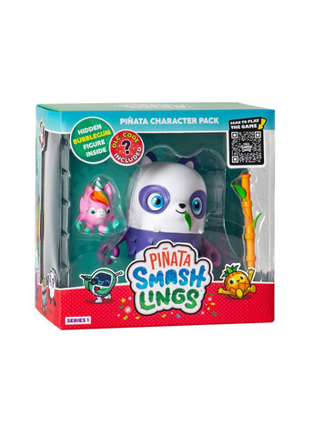 Знакомьтесь с красочными героями из популярной игры Pi?ata Smashlings! Это яркая и радужная игра на Roblox о волшебном мире - Пиньятаверс, над которым летает радужный кит, засыпая все уголки земли радужными капсулами. Собирают эти капсулы веселые Смашлинги. Они главные герои, которые представлены в виде сотни красочных фигурок (как реальных животных, так и вымышленных созданий). Они веселые, энергичные, обожают ловить радугу. Но не все является таким добрым и светлым в этом мире. Потому что с приходом темноты появляются грозные Меаньяты, превращая веселых Смашлингов в злых Башлингов. Удастся ли Смашлингам снова вернуться на сторону добра и веселья?Поэтому приготовьтесь открыть для себя удивительный мир Pi?ata Smashlings и погружайтесь в веселые приключения!Знакомьтесь с Пандой Сана и Смашлингом! Сана из Пиньятов, которые помогают Башлингам снова стать радостными Смашлингами. Ее фигурка имеет отличную детализацию и артикуляцию, размер фигурки - 11,5 cm. Фигурка открывается и прячет в себе одну фигурку смашлинга, имеет съемный аксессуар в виде бамбуковой палки. Размер фигурок смашлингов - 3,5 cm. Погружайтесь в их приключения и собирайте всю коллекцию героев Pi?ata Smashlings для более веселой игры! Дизайн фигурок повторяет их вид из игры Pi?ata Smashlings! Фигурка Пиньяты открывается и прячет в себе еще одного Смашлинга; Панда Сана имеет съемный аксессуар в виде бамбуковой палки; Размер фигурки Пиньяты - 11,5 cm, размер эксклюзивных фигурок смашлингов - 3,5 cm. Внутри игрового набора есть свой эксклюзивный код на приятный сюрприз в игре.В наборе: Большая фигурка размером 11,5 cm; 2 эксклюзивные фигурки размером 3,5 cm; Аксессуар; Игровой код.Игрушки развивают мелкую моторику, воображение и умение играть.Рекомендовано для детей в возрасте от 3 лет.