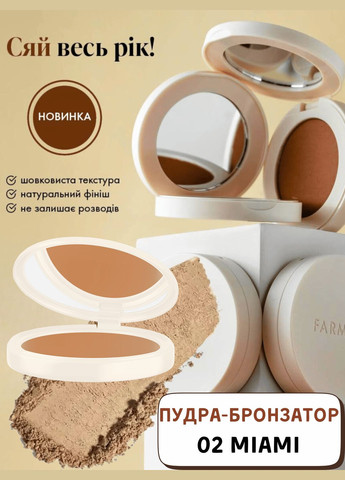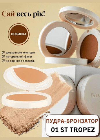 Солнечные бронзирующие пудры имеют долговременную мягкую формулу с питательным растительным скваленом и сатиновым покрытием. Имитирует здоровую кожу. Подходит для всех типов кожи. Нанесите пудру на щеки, лоб, нос, подбородок и шею для придания коже естественного бронзового оттенка. Легкая текстура идеально подстраивается под тон кожи, придаёт естественное сияние, легко наносится и стойкая в течение всего дня. Её можно использовать как бронзер или как румяна, в зависимости от желаемого эффекта. Пудры-бронзеры от фирмы Farmasi обладают множеством оттенков, так что Вы сможете подобрать тот, который идеально подойдет вашему цвету кожи. Делайте свой макияж еще более ярким и привлекательным с помощью пудры-бронзера Farmasi! Он матирует зону Т и фиксирует макияж, подчеркивает контуры лица. Может использоваться как пудра, благодаря своей легкой текстуре, а также как бронзер для создания естественного загара на лице и теле. Солнечные бронзирующие пудры Farmasi обеспечивают равномерное и стойкое покрытие, придают коже сияние и естественный оттенок. Они легко наносятся и растушевываются, не оставляя пятен и разводов. Благодаря наличию сквалена в составе, который является природным компонентом кожного жира, пудры интенсивно увлажняют и ухаживают за кожей, предотвращая ее сухость и шелушение. Пудра-бронзатор Farmasi представлена в универсальном оттенке, который подходит для большинства типов кожи. Она идеально подстраивается под естественный цвет кожи и дает ее лицу и телу солнечный и здоровый вид. Мелкие частички перламутра в составе пудры создают эффект блеска и придают коже сияние, что делает ее еще более привлекательной. Пудра-бронзатор Farmasi эргономично расположена в компактном футляре с зеркалом, что позволяет использовать ее в любой ситуации. Вы можете взять ее с собой в дорогу или на вечеринку, чтобы всегда сохранять свежий и сияющий вид. Тщательно подобранный оттенок и форма пудры позволяют создать идеальный макияж без риска ошибиться с выбором цвета или нанесения. Уникальная формула пудры-бронзатора Farmasi и ее многофункциональность позволяют использовать ее не только для придания легкого загара, но и для решения других задач макияжа. Она может быть использована для подчеркивания скул и придания им выразительности, а также для коррекции формы лица. Солнечные бронзирующие пудры Farmasi - это отличный выбор для всех, кто хочет выглядеть привлекательно и ухоженно каждый день! Состав: Talc, Mica, Synthetic Fluorphlogopite, Silica, Octyldodecyl Stearoyl Stearate, Dimethicone, Magnesium Stearate, Octyldodecanol, Squalene, Phenoxyethanol, Lauroyl Lysine, Ethylhexylglycerin, Triethoxycaprylylsilane. [+/- May Contain: Titanium Dioxide/CI 77891, Iron Oxides/CI 77491,CI 77492,CI 77499.]