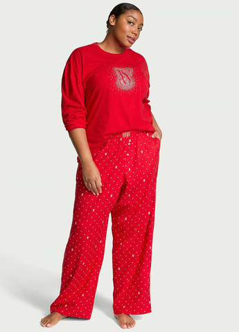 Пижамный комплект Victoria's Secret с фланелевыми брюками и лонгсливом Flannel Long-Sleeve Tee-Jama Set Брюки из мягкого фланелевого трикотажа с хлопковым лонгсливом, украшенным логотипом из стразов. Удобный и комфортный комплект с модным акцентом. * Свободный крой * Футболка с длинным рукавом, 100% хлопок, длина до бедер * Декор из блестящих стразов (логотип) * Сверхмягкие брюки из хлопково-модального материала, 56% хлопок 44% модал * Брюки с эластичным поясом * Машинная стирка