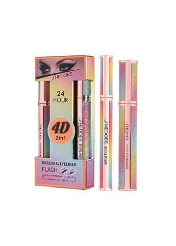 Набор для макияжа тушь для ресниц 10 мл + подводка-фломастер 1 мл Shedoes 24 Hours 4D 2 in 1 Тушь Shedoes 24 Hour Mascara 10 мл Эластичная текстура туши с натуральными маслами и восками хорошо наслаивается, помогая ресницам выглядеть более длинными. Нейлоновые фибры в составе создают эффект роскошных пышных ресниц. Тушь удлиняет и придает объем для ресниц, при этом не склеивает их и не создает эффекта «лапок паука». Щеточка классическая силиконовая, тоненькая и аккуратная легко захватывает и окрашивает каждую ресницу от корня до кончика, от внутреннего угла глаза к наружному. Подводка Shedoes 24 Hour Eyeliner 1 мл Подводка создаст идеальные стрелки, от ультратонких до эффектных графических, одним движением. Ее водостойкая текстура не размазывается и не растекается, а благодаря уникальной автоматической подающей системе наносится ровно, четко и без пробелов. Гибкая кисточка обеспечивает максимальный контроль, точность и плавность линии. Подводка имеет упругий, но подвижный кончик, что позволяет накрасить любую стрелку, так как с его помощью очень легко контролировать силу нажатия и толщины линии. Имеет угольно-черный матовый цвет, не трескается, не смазывается и не осыпается. Состав Тушь Mascara: Вода, Воск Euphorbia Cerifera (Candelilla), Карбомер, Изопропилмиристат, Цетилалкоголь, Глицерилстеарат, Магния Стеарат, Сквалан, Гидроксиэтилцеллюлоза, Метилпарабен, Пропилпарабен, BHT, CI 7749 Состав Подводка Eyeliner: Вода, C177266, Пропиленгликоль, Глицерин, Триэтаноламин, Токоферолы, Сополимер Акрилатов, Карбомер, Феноксиэтанол
