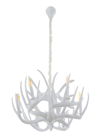 Люстра Рога BKL-107S/8 WH E14 подойдет под интерьеры кантри, прованс, классика с природными мотивами в оформлении. Она выполнена в белом цвете, диаметр составляет 90 см, а высота 50 см. Светильник монтируется на подвесной крюк, каркас держится на прочной металлической цепи. Источниками света выступают 8 лампочек с цоколем Е14 и максимальной мощностью 40 Вт. Можно устанавливать энергосберегающие, светодиодные или лампы накаливания. Плафоны в данной модели не предусмотрены, поэтому рекомендуем выбирать лампочки в форме свечи или свечи на ветру они выглядят наиболее эффектно. Люстра Рога станет оригинальным интерьерным акцентом загородного дома, ресторана, тематического кафе или клуба.