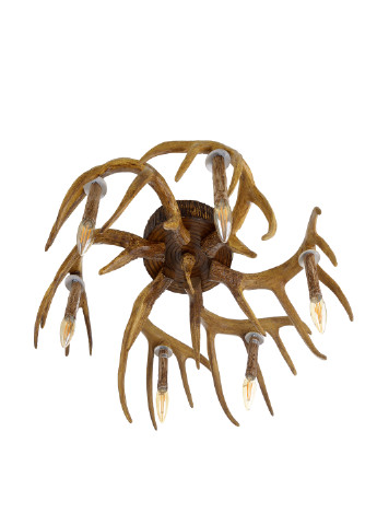 Люстра Рога BKL-111S/6 E14 дополнит и подчеркнет интерьеры в стиле кантри, прованс, классика и их современные интерпретации. Она выполнена в виде разветвленных лосиных рогов, цветовая гамма оттенки коричневого, максимально приближенная к природной. Массивный каркас диаметром 1 м подвешивается на цепи с помощью потолочного крюка. В качестве источников света используются 6 лампочек с цоколем Е14 и мощностью до 40 Вт. Поскольку в светильнике нет плафонов, рекомендуем выбирать лампы в форме свечи или свечи на ветру они будут выглядеть очень эффектно. Такая люстра подойдет для освещения загородного дома, дачи, ресторана или отеля.