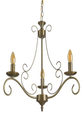 Люстра BKL-681S/3 E14 AB - это элегантность и классика. Она выполнена из металла цвета латунь, дополнена тремя держателями для источников света и декоративными элементами, оформленными в причудливые завитки. Прочное основание надежно крепится к поверхности с помощью потолочного крюка. Высоту подвеса можно регулировать с помощью цепи, удаляя или добавляя отдельные звенья. Данная модель не имеет плафонов, патроны сделаны в виде подсвечников. В них лучше выбирать лампочки с формой свеча или свеча на ветру - они выглядят наиболее эффектно. Предусмотрено использование ламп максимальной мощностью 40 Вт с цоколем Е14. Это могут быть энергосберегающие, светодиодные или обычные лампочки накаливания. Такая люстра, несмотря на ассоциации со старинными канделябрами, имеет вполне современное прочтение и сможет стать интерьерным акцентом в обстановках в стиле лофт, винтаж, скандинавский, прованс и многих других.