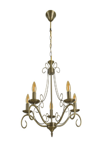 Люстра BKL-681S/5 E14 AB - это элегантность и классика, которая никогда не выйдет из моды. Данная модель выполнена из металла цвета латунь, дополнена пятью держателями для источников света и декоративными элементами, оформленными в причудливые завитки. Прочное основание надежно крепится к поверхности с помощью потолочного крюка. Высоту подвеса можно регулировать с помощью цепи, удаляя или добавляя отдельные звенья. Конструкция не имеет плафонов, патроны сделаны в виде подсвечников. В них лучше выбирать лампочки с формой свеча или свеча на ветру - они выглядят наиболее эффектно. Предусмотрено использование ламп максимальной мощностью 40 Вт с цоколем Е14. Это могут быть энергосберегающие, светодиодные или обычные лампочки накаливания. Такая люстра, несмотря на ассоциации со старинными канделябрами, имеет вполне современное прочтение и сможет стать интерьерным акцентом в обстановках в стиле лофт, винтаж, скандинавский, прованс и многих других.