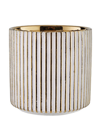 Цветочный горшок высотой 10,5 см, диаметром 12 см. Вашим зеленым любимцам точно нужно достойное обрамление. Мы создали цветочный горшок GOLDIE, который подойдет большинству растений и подчеркнет их естественную красоту. Классическая цилиндрическая форма, с необычной гофрированной поверхностью, сочетание белого матового покрытия и глянцевого блестящего золотого, универсальный размер 12x12 см. Минималистичная форма и интересные акценты позволяют создать поистине прекрасный предмет интерьера, а не только функциональную вещь. Изделие выполнено из глины, лучше всего подходит для цветочных горшков, ведь такой материал благодаря своей пористой структуре пропускает воздух в корни и впитывает лишнюю влагу. Горшок GOLDIE не только подойдет растениям, но и будет гармонично сочетаться с золотыми предметами в интерьере, свечами и фонарями. А любой свет будет красиво отражаться от золотистых граней изделия и будет наполнять пространство сиянием.