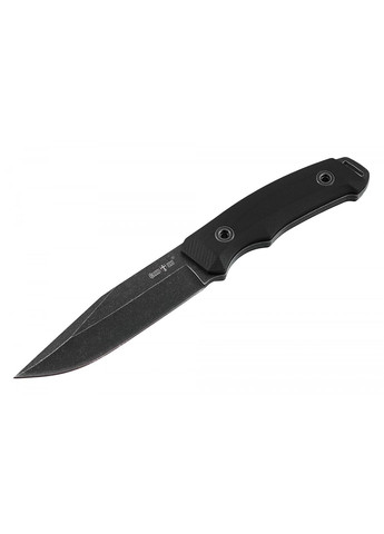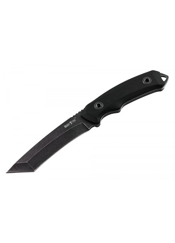 Нож туристический Grand Way 01270 сочетает красоту и изящество тактических и танто-подобных ножей. Это полноразмерный нож-ломик. С толщиной клинка 3,6 мм он может работать с твердыми и прочными материалами, выполнять сложные работы. По конструкции нож туристический Grand Way 01270 соответствует принципу надежности и неубиваемости. Это фултанг, выполнен как цельная пластина металла, часть которой оформлена под клинок, а вторая служит основанием для рукояти и переходит в хвостовик. Поскольку рукоять с накладками и клинок представляют собою единое целое, то здесь просто нечему ломаться. Для клинка разработчики компании Гранд Вей использовали хромистую подшипниковую сталь 440С. Она имеет свойство отлично противостоять коррозии, твердость до 58 HRC, клинок долго поддерживает остроту режущей кромки, может долго использоваться без правки. Покрытие клинка Black Stonewash служит хорошей защитой от ржавчины и царапин. К тому же на таком клинке менее заметны следы грязи и не отражаются солнечные лучи. Рукоять туристического ножа Grand Way 01270 оформлена накладками из композитного полимерного материала G10. Он покрыт рифлением и фрезеровкой, чтобы обеспечить максимальную сцепляемость с ладонью и комфортность хвата. Нож как влитой лежит даже во влажной ладони. Этот материал не впитывает влагу, устойчив к перепадам температур, не выгорает на солнце и приятен на ощупь при продолжительном использовании. Треугольный выступ на конце рукояти может быть использован как стеклобой при необходимости. Также на нем расположено темлячное отверстие для крепления страховочного шнура или темляка.